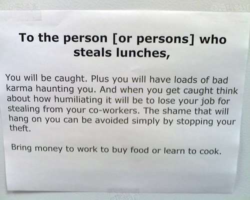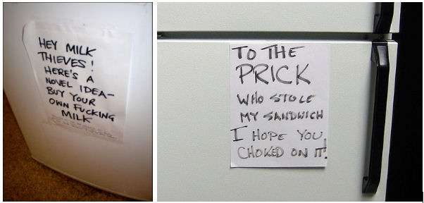 On more than a few occasions his colleages have left notes on the fridge expressing their discontent with their food going AWOL.
