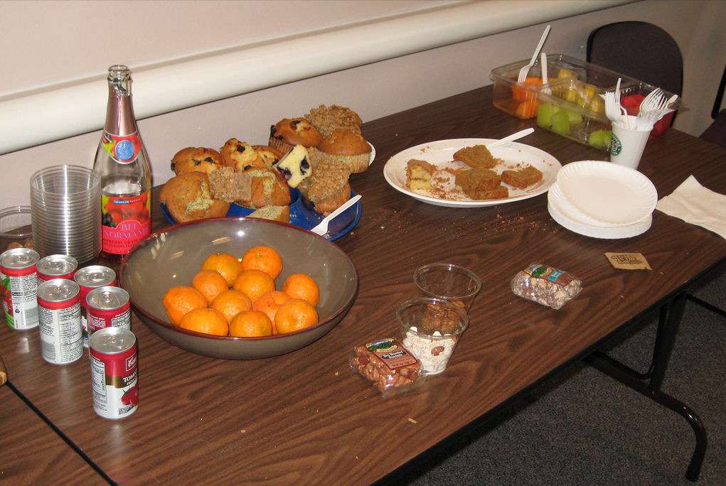 I’ve been doing this for some time now, and I have to say, I have a system that works quite well. So basically, I have an arrangement with all of the AAs to send me a text message and email with the date, time, duration, and room # of every meeting where there’s going to be food. Armed with that info, I start inconspicuously hanging around the meeting room within 15 minutes of the meeting end time. Once the meeting is over, I swoop in for the leftovers before they are brought to an area kitchen. It’s great.