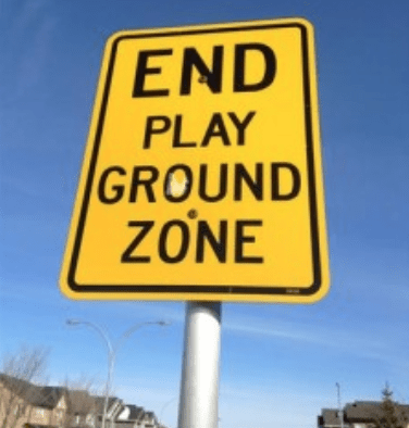 Apparently confusion ensued when a contractor saw a sign reading “End playground zone” and took it to be the ‘big yellow sign’ that had been erected at the drilling location. “To me, End Playground means end the playground, finish it!” commented Ted Durfish, a laborer involved at the scene, “Not my fault those idiots can’t make a better sign!”