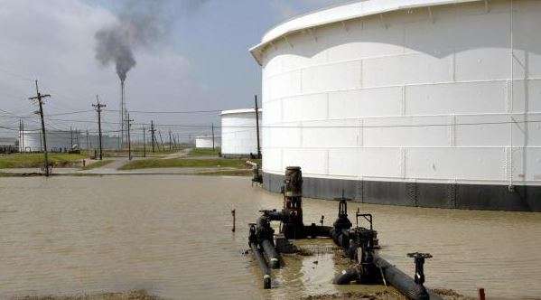 This operation is designed primarily to help offset the cost of rebuilding after a disaster like the 2013 flood.  When an incident occurs, flood waters are channeled down hole to create pressure and move stagnant oil to surface.  It can then be sold to offset the cost of the damages. – Angeloy Tripomontoforia, outside of Finite Resources office after a meeting to buy their Groober field.