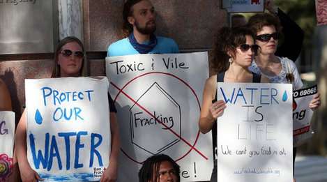 Protesters at an anti-fracking rally in Fayetteville, Louisiana.