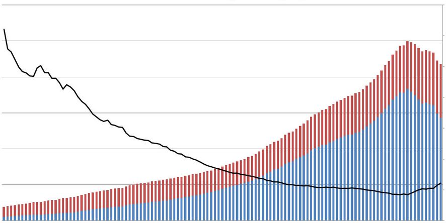 Chart showing projected Saskatchewan oil exports (in black) versus Canola-C exports (red/blue)