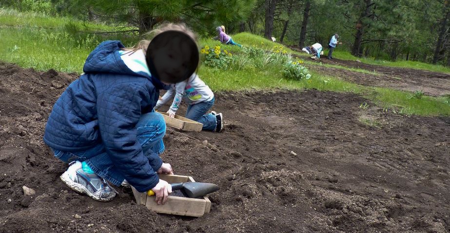 The engineer's daughter playing with rocks.