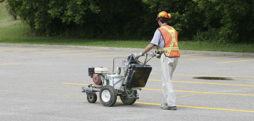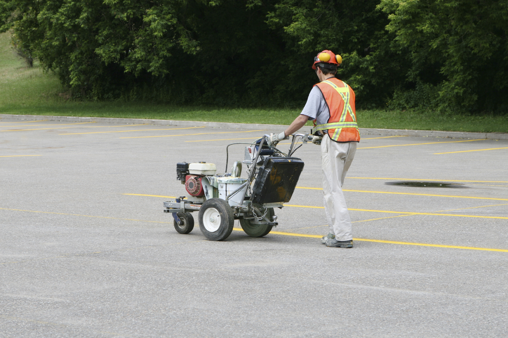 City of Calgary’s Roads Division employee Jason Bracey, practicing painting straight lines in an abandoned parking lot with one of the new ManuMatic 2000 Lane Marking machines.