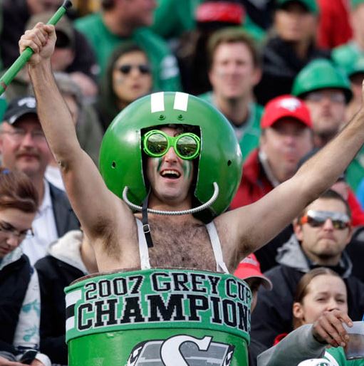 We did it! We won the f%*kin Grey Cup! F^*@k YEAH! Now we’ll see who talkin like a smart mouth out there in whereva you came from! Think you’re sumthin special eh Waterloo? Go back to New Brunswich you teeny faced pansies! Green and white gonna take you to school and ring you out the bell! WHOOHOO! – Riders Fan Club President, Mike Farmer