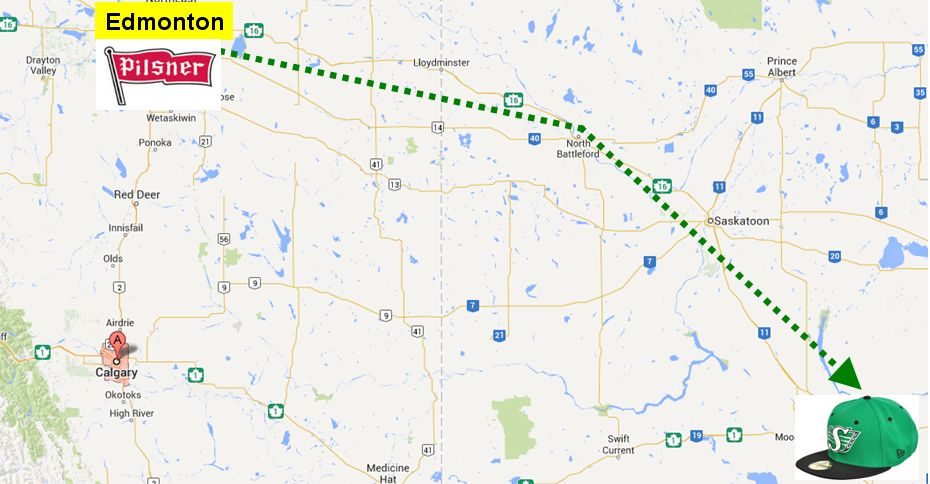 Path of the makeshift pipeline that expedited Pilsner to Riders Stadium