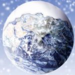 Rendition of the planet earth within days of leaving orbit, freezing over as it moves away from the Sun