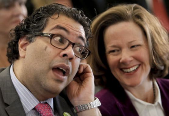 Mayor Nenshi with Premier Redford. “It’s okay Nenshers, don’t sweat it. Considering I still have my job after the shit I’ve pulled off and the public money that I’ve burned through, you’ll be just fine. Hahaha. Really, you will be.”