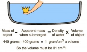 The diagram that Mr. Bernoulli plans to use to teach his newborn the Archimedes Principle