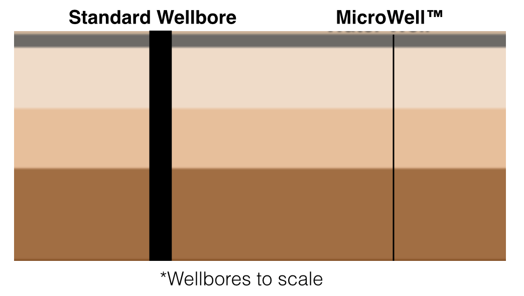 The company has created a special drilling rig and drill pipe that enables it to drill 1/2″ diameter wellbores. It claims that companies using its new MicroWells technology will be able to significantly reduce their environmental impact. The company’s President & CEO, Mr. Dick Halfapush, former COO at Friends of the Earth, explains,