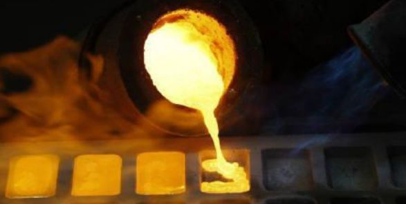 Artist’s rendition of the molten gold that would be extracted from the gold reservoir using SAGD-WTF (as it pours into the ingot molds at the wellhead).