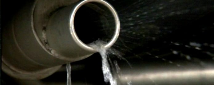 Water vapour from the exhaust of a prototype hydrogen fuel cell powered mini-van