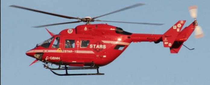 While medics attended to the immediate injuries to Brodys arm, roughnecks guided the STARS helicopter to a landing point on top of pickup sled decks with the sleds removed. The long box heavy duty pickup trucks provided ample landing space for the STARS rescue helicopter. With STARS landed, Brody was moved into the chopper and flown to Edmonton for emergency surgery.