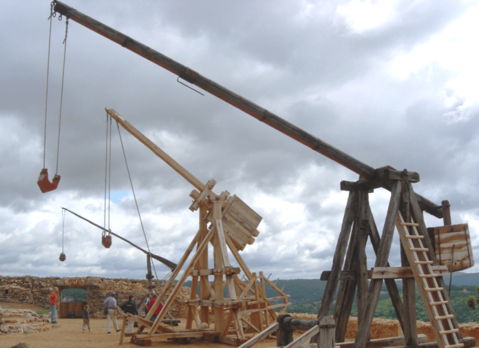 No images were captured of the makeshift trebuchet, but this is a replica of a medieval model used as movie props