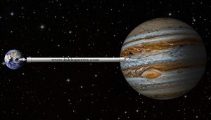 • The average radius of Jupiter’s orbit is 778,547,200 km. The average radius of Earth’s orbit is 149,597,870 km. So, the length of the pipeline will have to vary from 628,949,330 km to 928,145,070 km. The variable length will be accommodated by a shitload of expansion loops.