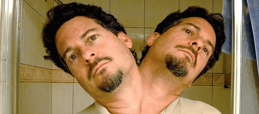The antipathy between the two halves became so very sharp that his brain and skull began to split along the medial longitudinal fissure. With time and the aid of a team of neuro- and plastic surgeons he wound up with two complete heads. The left head controls the left, and geologically-oriented side of his body and the right head, focused on engineering, controls the right side.