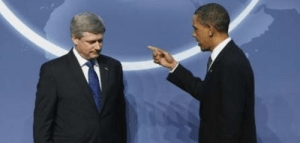 Obama was overheard telling Harper, “Stephen, so what’s it like running a small country that tries so hard to be big like the U.S.? And do you guys got Dunkin’ Donuts up here?”