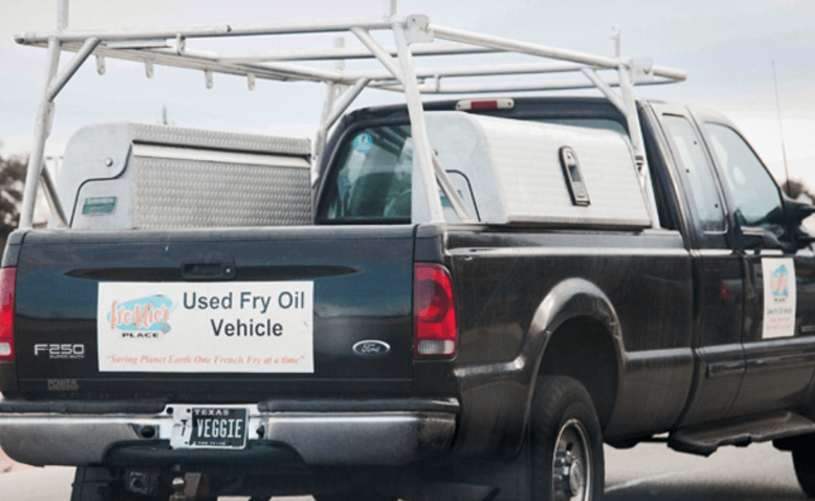 Delivery truck bringing supplies to the rig, also run of recycled fry oil