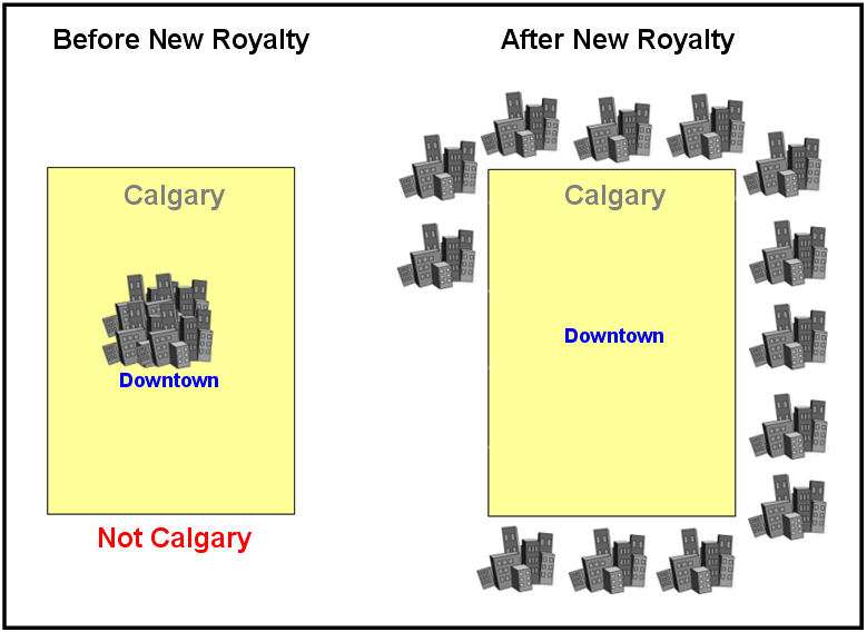 Although details of the new municipal royalty have yet to be officially released, a source close to the city’s head official has said that every oil and gas company whose headquarters is located within Calgary’s city limits will be charged a royalty, or a tax, if you will, that is calculated as a complicated function of the company’s daily production (averaged over the year), and square footage of all office space within city limits. This new tax will take effect in the 4th fiscal quarter of 2013 and will be invoiced annually at around the same time that property taxes are paid.