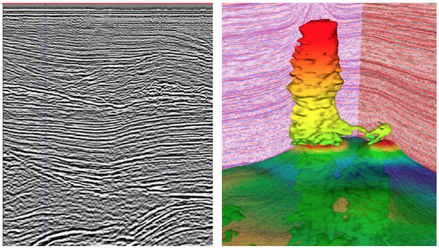 2 very different seismic interpretations based on exactly the same data. In fact, only a few settings in the software were tweaked to get one from the other.
