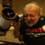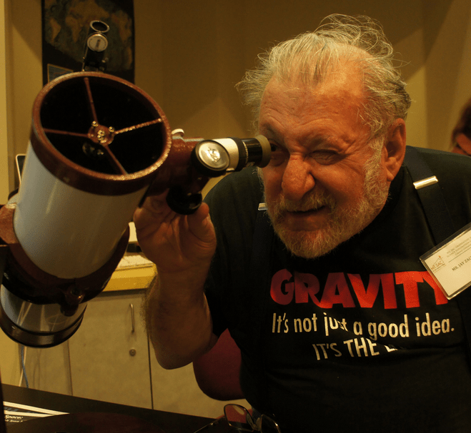 Dr. Fritzburger, looking through a telescope