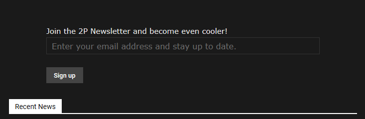 And to join the 2P Newsletter, simply enter your email address in the sign-up area below the featured article and hit the Sign up button.