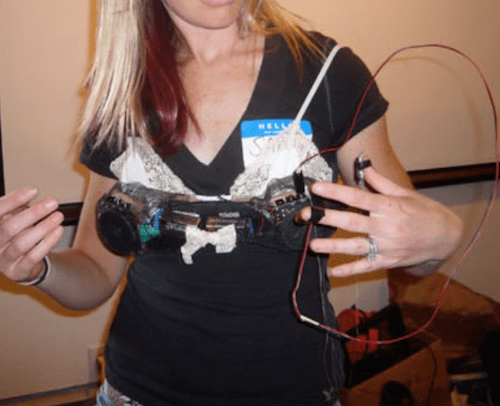 Since I’m as flat as Saskatchewan, I was a natural to test the power generator in a laboratory setting. This was because there was plenty of room for instrumentation in the prototype bra. There were a few glitches, but nothing like this ever happened. – Dr. Underwyer