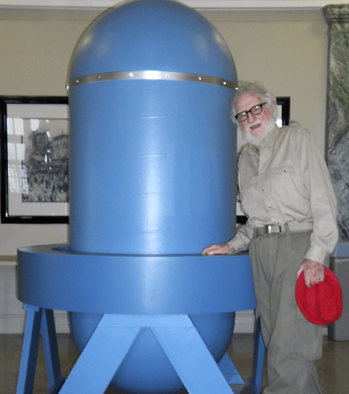 Rhomas Pickletin’s old man with an early prototype design. After months of analysis, the team figured it was too large to fit in a bra.