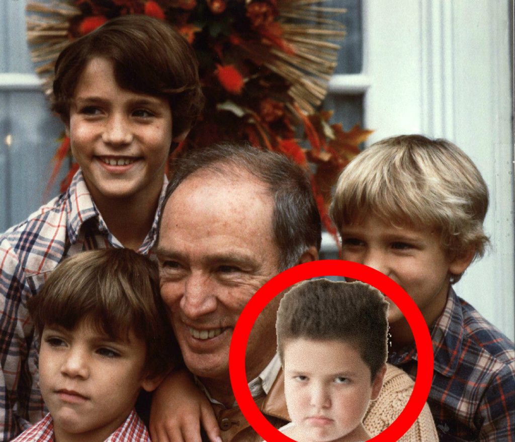 Undated photo of Pierre Elliott Trudeau and his sons. Jason Trudeau is highlighted in red circle. He is visibly upset that he is the black sheep of the family no thanks to his well-upholstered build.