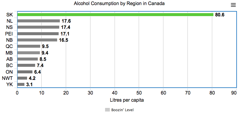 Alcohol consumption by region in Canada. SK is clearly an outlier.