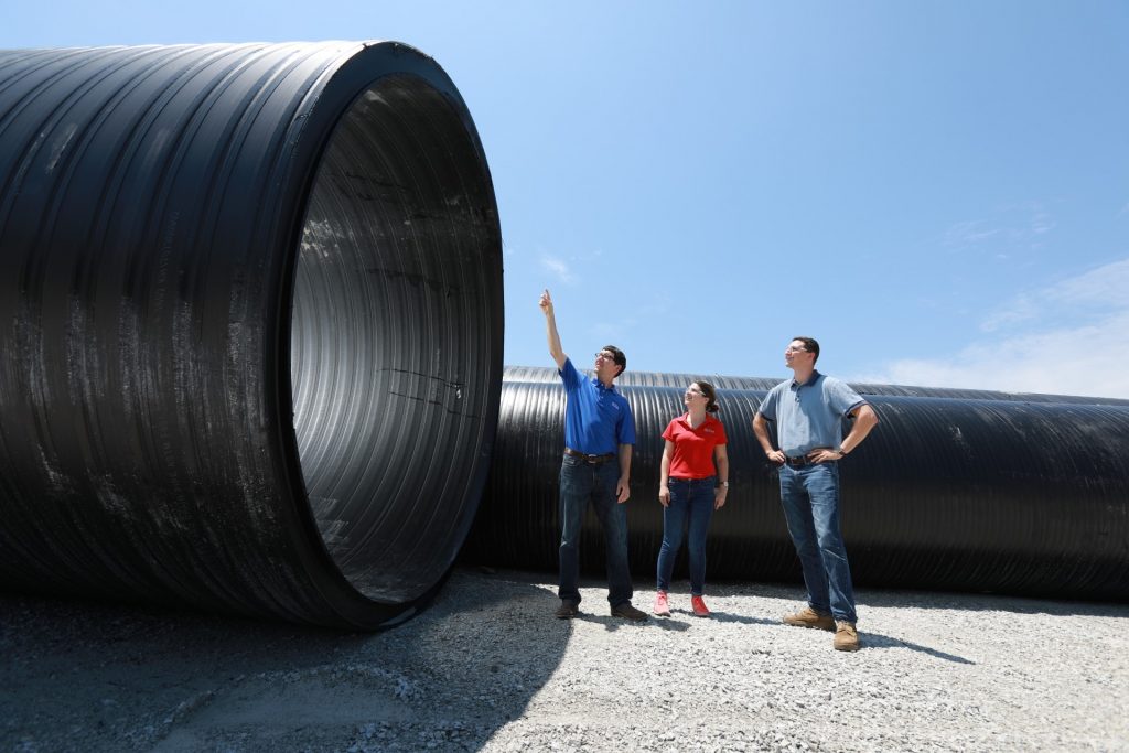 Hareeb Allsack, left, showing the AirSuck™ pipes to prospective investors.