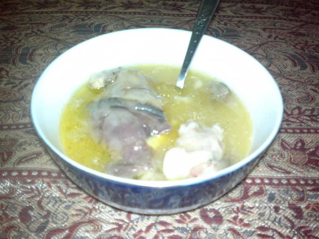 Fricasseed pig’s feet on a bed on pureed pasta.