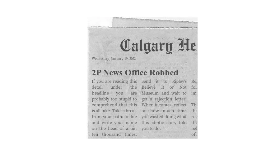 The theft was reported to the Calgary Police Service but the chance of solving the case is remote. Sergeant Fred Scuttle is the lead investigator and he said, “There is no forensic evidence at all. The witnesses are unreliable as hell. Besides, everybody at CPS hates 2P News for their snarky reporting of our activities, so nobody’s going to break a sweat investigating. In fact, we’re wondering if a robbery actually took place or if it is just a case of covering up an embezzlement.”
