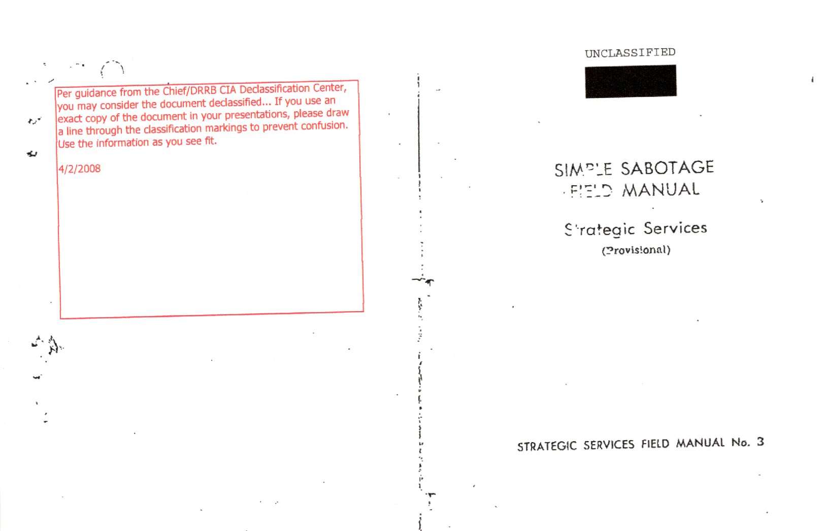 If you would like to read the entire manual, you can find it at here. https://archive.org/details/SimpleSabotageFieldManual