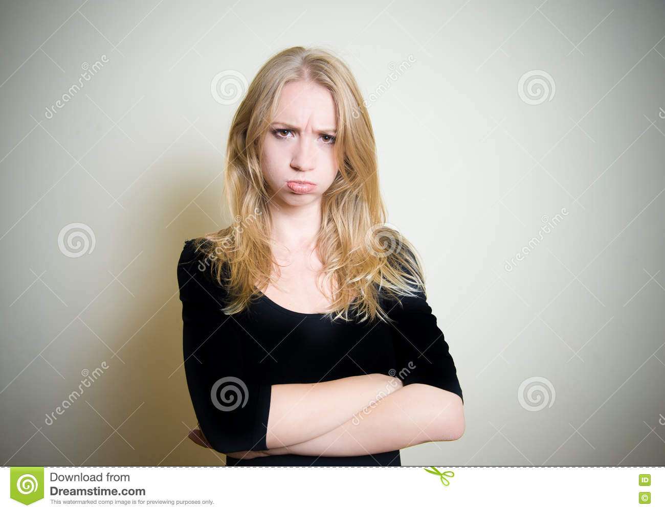 young-blonde-woman-angry-sullen-portrait-attractive-looking-camera-face-expression-sulky-offended-peevish-clear-wall-79432741